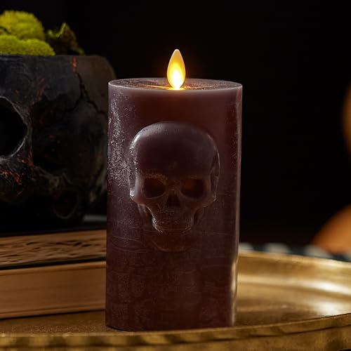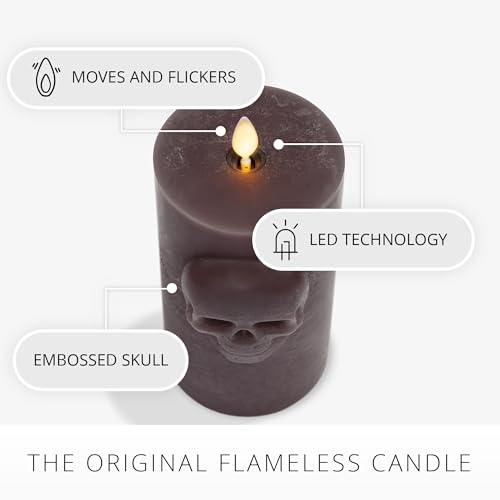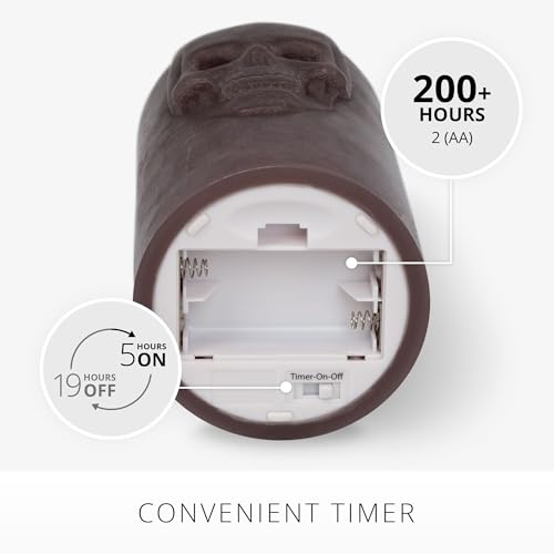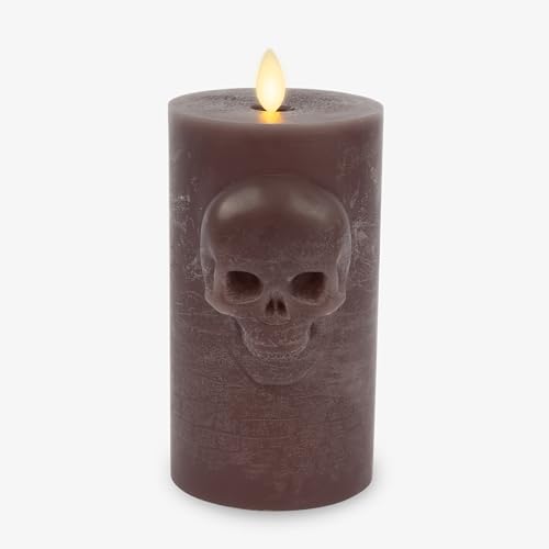 Luminara’s Chalky Skull Pillar in Dark Chocolate adds eerie charm with its embossed skull relief design and moving-flame technology. The dark chocolate color and textured matte finish add a rustic elegance to the pillar, which looks stunning alongside other Halloween décor.