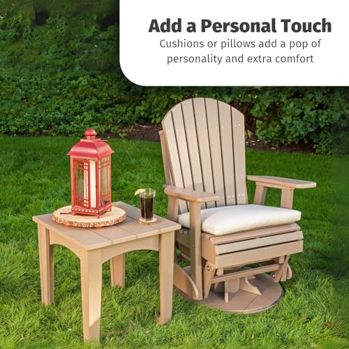 Enjoy what Mother Nature has to offer with this simple, yet elegant Outside patio chair. The heavy duty base of the Outside glider chair provides stability and a full 360 degrees of motion. LuxCraft swivel patio chairs feature a contoured seat and rounded edges that provide premium comfort. This swivel rocking chair also glides backward and forward to melt the days stress away. Complete your Outside space with Outside swivel rocker patio chairs. Place these swivel Outside patio chairs on your porch, patio or in your garden to create a fun and inviting entertainment space for friends and family. — Dimensions – Overall: 30″W x 28″D x 44″H, Seat: 23″W x 18″D, Weight: 94 lbs. Assembly is required, alternatively, instructions are included for simple assembly. — Made from poly lumber (HDPE) a plastic made from post-consumer recycled waste like milk jugs and laundry bottles. This plastic is melted and pressed into dense boards that can be utilized as a building material, such as Outside furniture. Our poly is 90% recycled plastic by weight, so you’ll feel good about your poly furniture. Poly is also exceptionally resistant to splintering, warping, moisture and many other environmental factors. Built with UV stabilized pigments to minimize fading through sun and weather exposure. — LuxCraft products are backed by a limited lifetime residential warranty, and a 5-year limited commercial warranty. Defective and non-conforming products or parts are replaced for free of charge to you. Contact our sellers for more info.