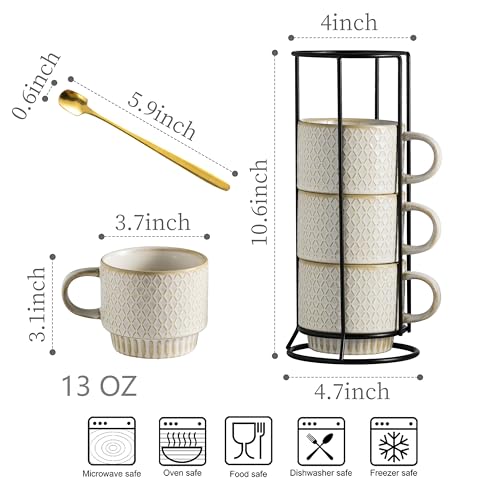 MULTIPURPOSE: These ceramic coffee mug with rack aren’t just for coffee. Enjoy your favorite beverage in style, whether it is tea, hot chocolate, or another beverage. Each and every mug has a capacity of 13 ounces to hold your favorite beverage.