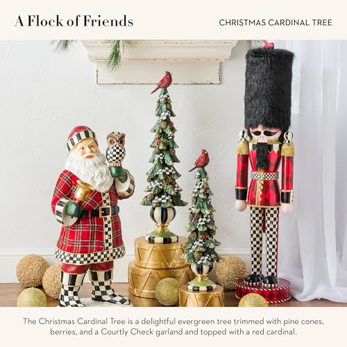 MACKENZIE-CHILDS Christmas Cardinal Tree with Courtly Check Garland, Tabletop Tree