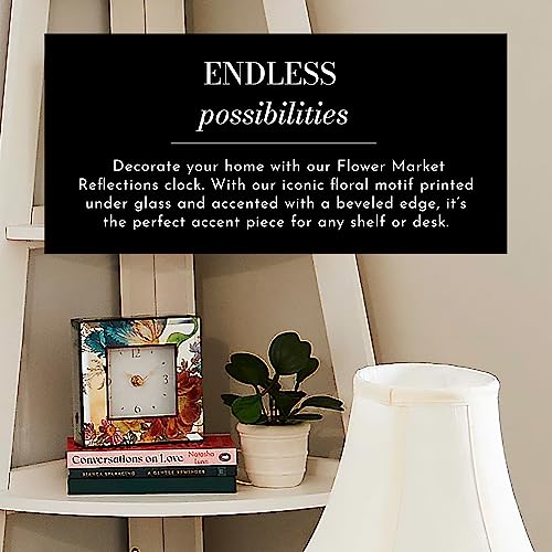 ELEGANT & COLORFUL CLOCK: Watch the time fly with this gorgeous tabletop clock. This handsome desk clock features our colorful Flower Market Reflections pattern printed on glass to bring life to any room.