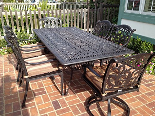 The Mandalay Out of doors Furniture Collection Boasts a Undying Design that may be Elegant yet Relaxed and Durable. The Mandalay 7 pc Out of doors Patio Dining Set with 44″x84″ Rectangle Table is made with high Quality Cast Aluminum with Five Stage Powder Coated Antique Bronze Finish. Guarantee one hundred% Rust Free ! It is going to last for plenty of Years of Circle of relatives Summertime A laugh and Never-ending Out of doors Entertainment Occasions !