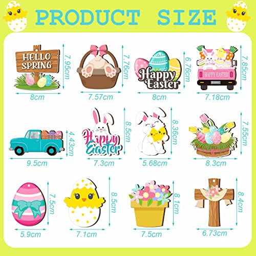 Attractive and Cute Design: these Easter wooden hanging ornaments come in 12 different styles with different patterns, including Easter egg, bunny, carrot, basket and more, the assorted designs are suitable so that you can decorate your home, there are such a lot of choices for you