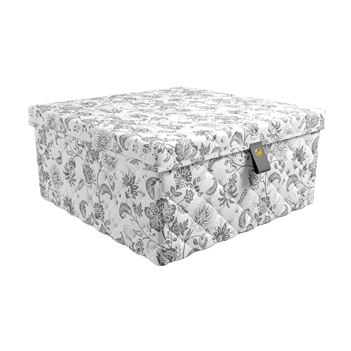 PRODUCT DIMENSIONS: The lidded storage organizer with dividers measures 13”W x 13”D x 6”H. The maximum loading capacity is 15 pounds.