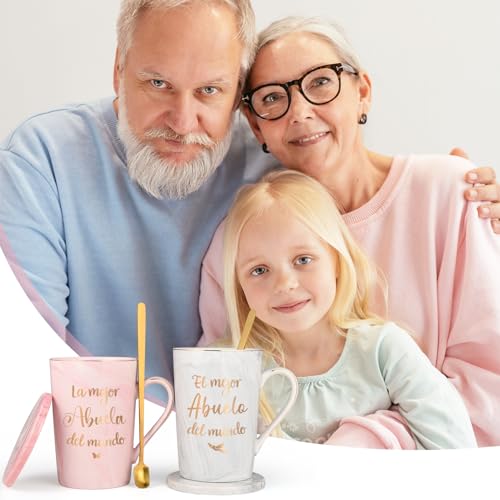 GREAT GIFT CHOICE: The delicate La Mejor Abuela and Abuelo coffee mugs set with novelty design will be excellent gifts for Spanish speaking grandparents who are coffee lovers on Christmas, Mothers Day, Fathers Day, birthday, anniversary and other occasions.