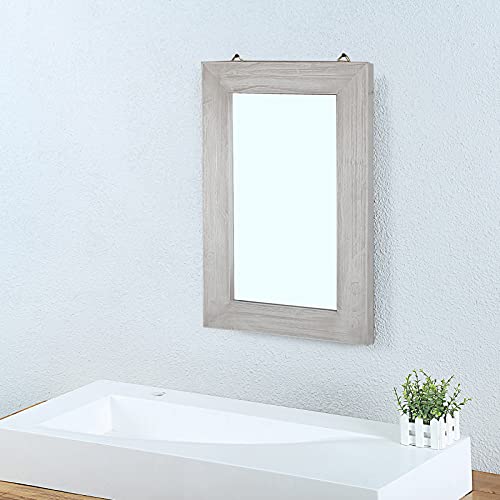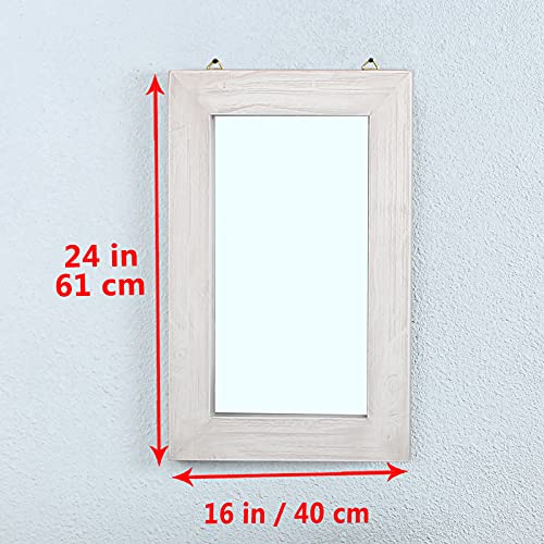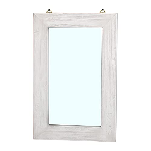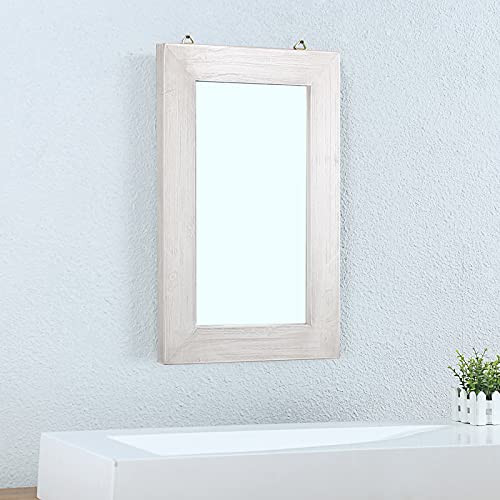MBQQ Rustic Flat Wood Frame Hanging Wall Mirror Decorative Bathroom Mirrors for Wall Vanity Mirror Makeup Mirror,16″ x 24″ Retro White