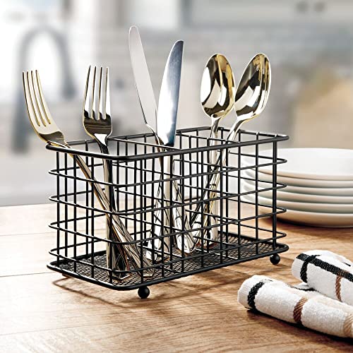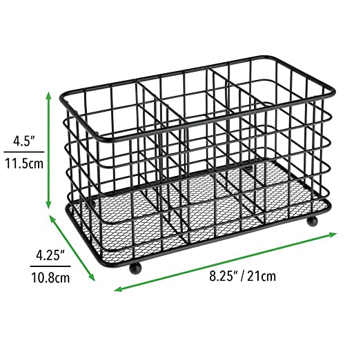 • Mdesign farmhouse modern metal wire cutlery and utensil storage organizer bin for kitchen pantry table and countertop utensil caddy holds forks knives spoons napkins 3 sections black  urban country home decor