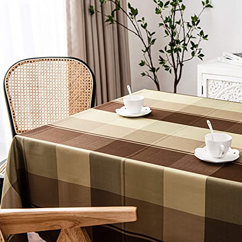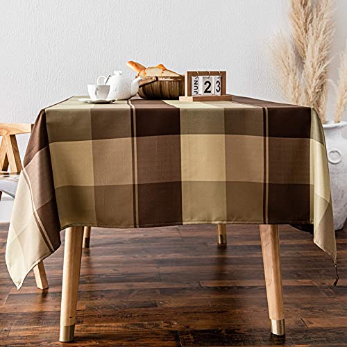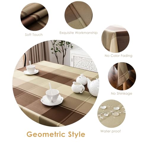 Melodieux Plaid Check Rectangle Tablecloth Holiday Party Table Cover Waterproof Wrinkle Resistant Checkered Outdoor Tabletop Decoration Kitchen Dining Room, 60″ x 84″, Taupe