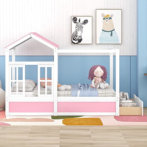 [Space Saving & No Box Spring Required] There is a drawer under the bed that may be placed on the left or on the right as you’d like, which can provide extra space for your little one’s toys. The Kids house bed is constructed with a sturdy pinewood frame that can make stronger stability and durability. Slats are included, just put your mattress on (mattress not included).
