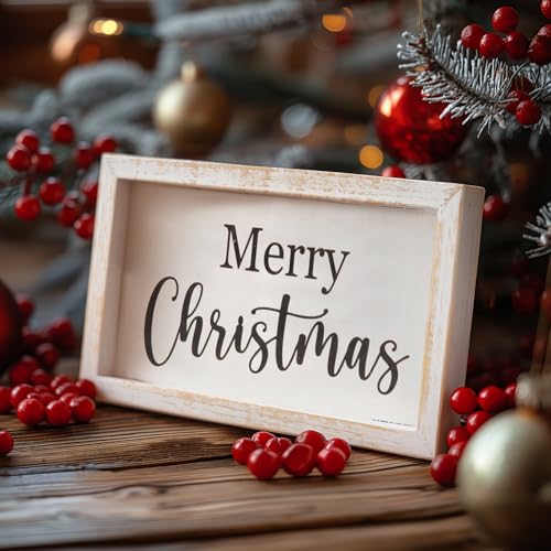 Festive Design:The sign features the exquisite printed font: “Merry Christmas”, adding a festive touch to your living space, making it an eye-catching Christmas Tiered Tray Decor and Small Christmas Sign