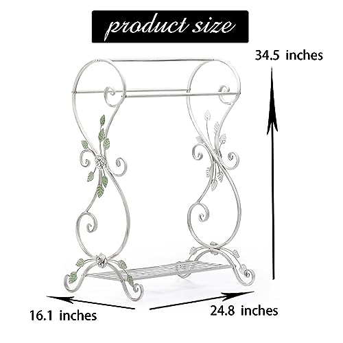 Towel Rack Stand. This Metal Freestanding Towel Rack is Made of 100% iron, easy to assemble, It feels sturdy enough to hold a number of towels. Great quality and last for a very long time.
