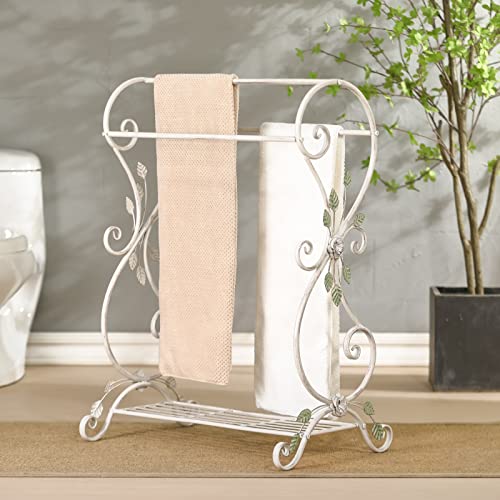Standing Towel Rack. This Bathroom Towel Rack Stand is a convenient and easy method to store towels and accessories for your bathroom, kitchen or bedroom, laundry room. Featuring three bars and a lower shelf that will help you keep your towels, slippers and other necessities organized and off of the floor in style.
