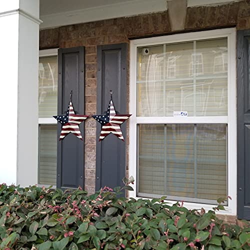 Metal Star Barn Hanging Patriotic Wall Decor Set of 2, Rustic American Flag Metal Barn Star Wall Art Door Decor 4th of July Decoration Outside Patriotic Star Decor -The metal barn star patriotic wall decor is a brilliant addition for any patriotic themed room such as living room, bedroom, guest room, toilet, kitchen, and so on. -Featured with a hanger at the most sensible, it’s easy to hold the Fourth of July decoration rustic star decor at the wall or door. Fully assembled before shipping. -The American flag star 4th of July home decor is a brilliant housewarming gift, birthday gift, primitive country gift idea for family and friends. -Country star decor American flag decoration for home is a nice patriotic decoration for wall or door, porch, patio, garage, or garden, great patriotic home decor. -Package: 2 Pcs Metal American Barn Star