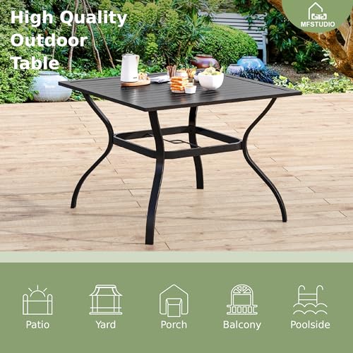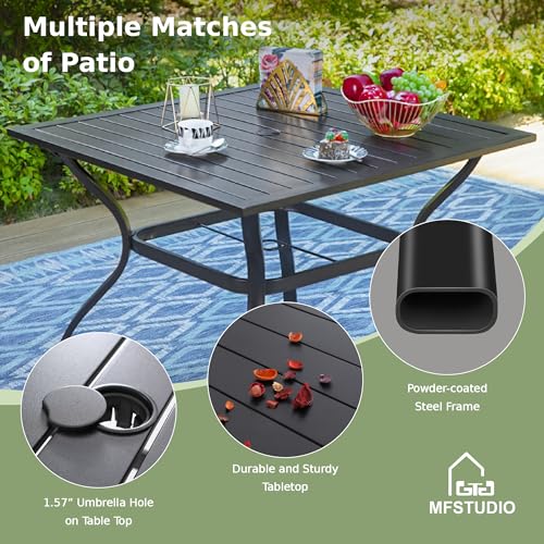 ➤【Metal Slat Table】:Stylish up to date Steel Slat Surface design makes the table sturdy and polished elegantly; The unique table looks simple and elegant fit most living space add an elegant look for your patio;1.57″ umbrella hole fits most umbrellas