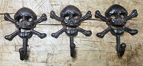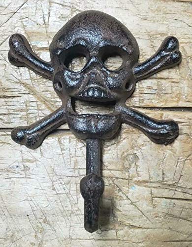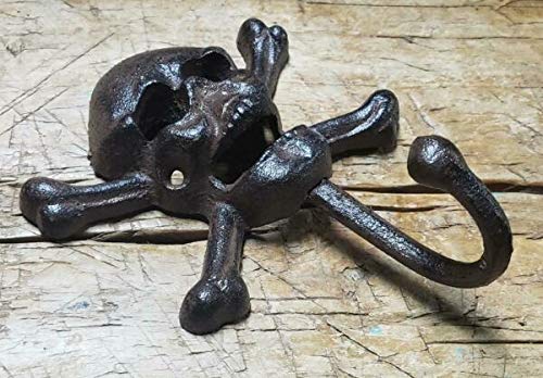 Cast Iron SKULL and CROSSBONES Towel Hanger Coat Hat Hooks Hook PIRATE Jolly Roger – By MIABE