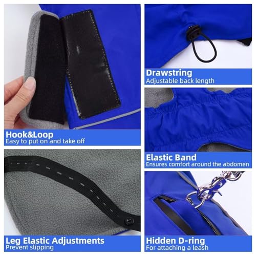 Water-Resistant and Windproof: This dog winter coat,designed for out of doors climbing and adventures, is made of polyester and fleece fabric.It provides excellent protection against harsh weather, keeping your dog dry on rainy days and shielding them from strong winds, ensuring extra warmth throughout out of doors activities