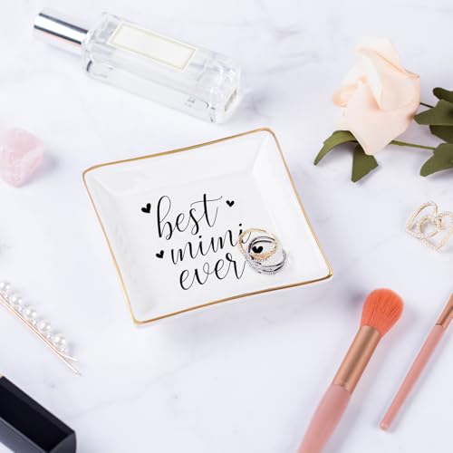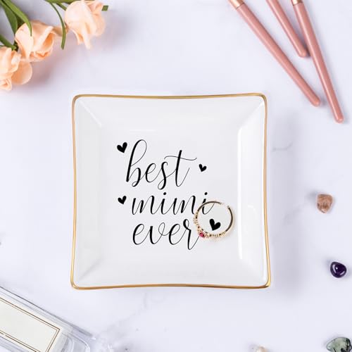 ✨🎁【Great Mimi Gifts】Best gifts for mimi, the pretty jewelry dish with heartwarming sayings “Best Mini Ever” Thoughtful sentimental mimi gifts from grandchildren, granddaughter, grandson. This ring dish is specially designed for your mimi to tell her that blessed to have her and what kind of we love her and respect her.
