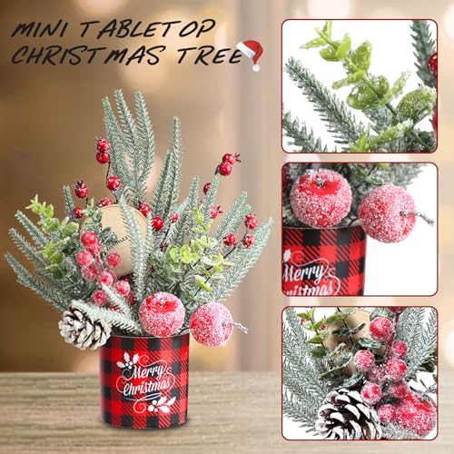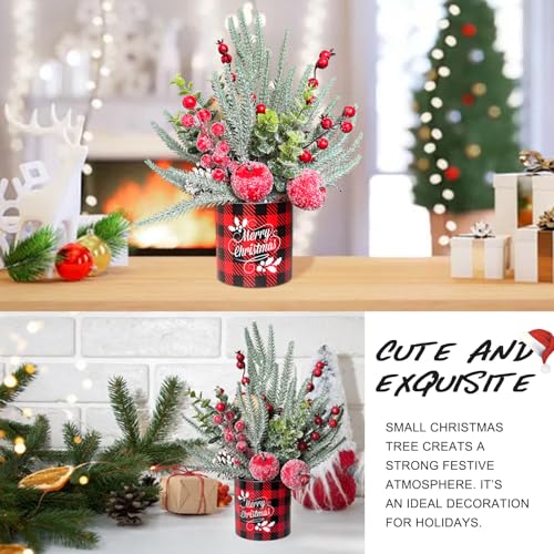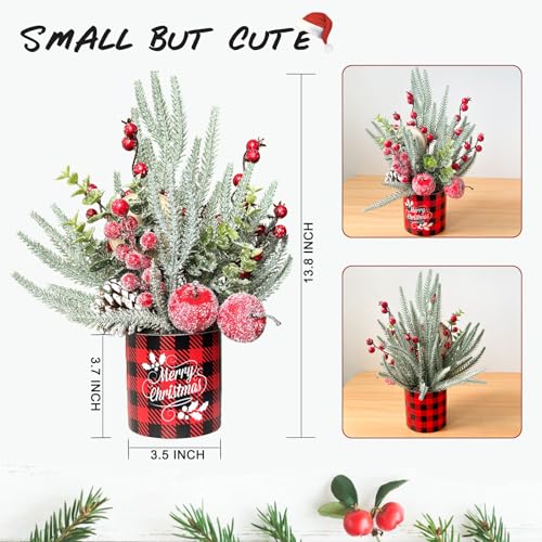 Small Table Top Christmas Tree:The Christmas tree decoration is made up of lifelike Christmas pine needles, berries, and pine cones, its exquisite exterior design makes these mini Christmas trees the very best choice for indoor and outside holiday decoration, perfect for adding festive atmosphere to any small space