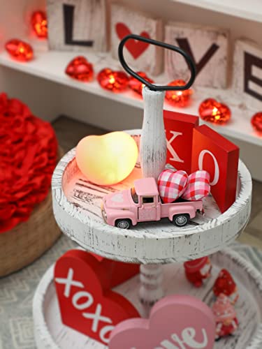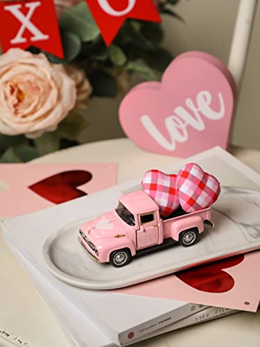 💖【Cute Valentine Mini Truck Décor】This little metal truck valentine’s day décor set is a smart addition to your own home in love season. Suitable for farmhouse style tiered tray, table decors, bookshelf