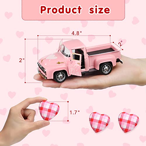 💖【Specification】Our diecast truck measures 4.8” long, 2” tall and 2” wide. 2pcs removable fabric pink & red buffalo plaid heart, each and every size is 1.7″. The dimensions is small, please confirm The dimensions before purchasing