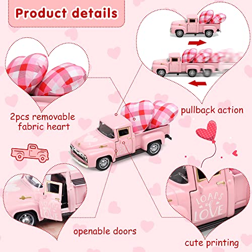 💖【High Quality】The vintage pink truck decor is made of metal material, which is sturdy. The doors are openable and its pullback action car. “LOADS of LOVE”imprinted on the door and a heart imprinted on the hood.