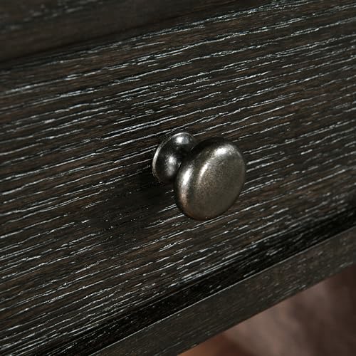 What You Get? One beautiful end table with smoked Black wood Surface and carved legs ,Color-Block and Leaf Carved Texture Tabletop,One large drawer for more space. More sturdy and stable for your home.Large tabletop can meet your store need.One farmhouse home table is an ideal object to your house.