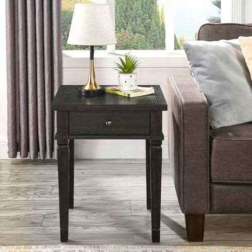 Side Table With Large Drawer: the tabletop of this square living room table is 17.7”x 17.7”,It provides enough space for living objects, drinks, snacks, remote controls, and magazines. The big drawer supply the private space for you. The height 21.7” fits your bed, your sofa or you study desk. You just need enjoy your happiness time with your circle of relatives.