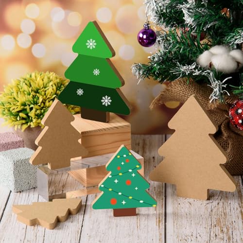 Proper Size: our Christmas tree wooden signs measure approx. 13 x 15 cm/ 5.1 x 5.9 inches, and another measures approx. 8.8 x 10 cm/ 3.5 x 3.94 inches, with a thickness of approximately 0.9 cm/0.35 inches, which is stable enough to be placed on any plane, and with enough space so that you can write some blessings or draw some cute patterns, suitable for DIY personalize Christmas crafts and decorate your holiday parties.
