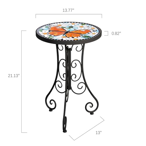 [Outdoor side table] This side table uses a charming and gorgeous mosaic inlay composed of brightly colored tiles arranged in a unique pattern. Add elegance to your garden space. This beautiful arrangement with intricate and delicate production details instantly catches the eye, brightens your space and gives it a more artistic atmosphere.