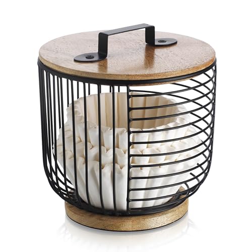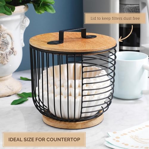 ✓ Durable Construction: The lid, made of metal and wood, not only secures your filters but adds a touch of durability and style to your coffee station.