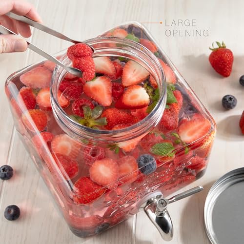 WIDE OPENING: Create refreshing drinks effortlessly with the wide drink dispenser opening, very best for infusing your favorite beverages with luscious fruits or berries for a burst of improbable flavors