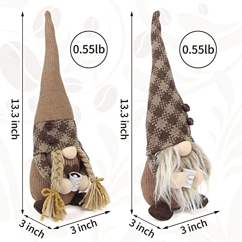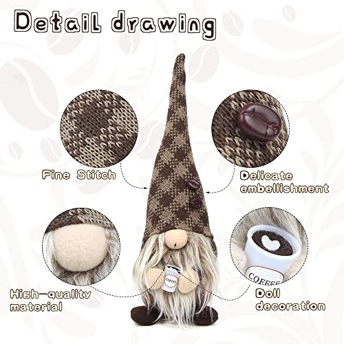 【Product parameters】 The coffee-themed gnome decoration is available in 2 packs, the size of a single plush gnome: L x W x H: 3*3*13.3 (inch) weight: 0.55lbs