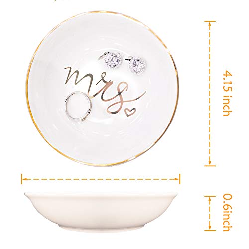 Mrs ring tray-gold Mrs jewelry dish: Gold jewelry holder,gold leaf design by hand,Solid construction.Measures approximately 4″L x 4″W x 0.6H. Put it in the toilet or kitchen,even as you wash your hand,do dishes or prepare a meal.Leave it by the sink or nightstand to place your rings,earrings, necklaces and watch.