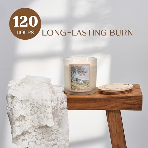 【Burn Quality】: Infused with premium oils, our 24.7-ounce candle offers a wealthy fragrance journey. With 3 lead-free HTP cotton wick, it ensures a smokeless burn for 120 hours, spreading a consistent aroma. The triple wick system enhances fragrance distribution, making it ideal for a long lasting scent experience .