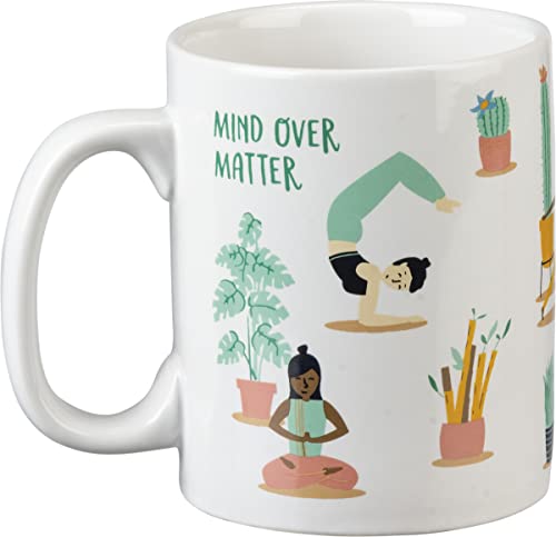 A whimsically-impressed stoneware coffee mug that includes double-sided “Mind Over Matter” sentiments with wrap-around more than a few yogi character and plant designs. Complements smartly with coordinating items in collection for an enthralling show. Microwave, oven, dishwasher, and food secure; holds 20 oz.. Dimensions: 20 oz.. Subject matter: Stoneware UPC: 190134031060 Artist: Lauren Jefferis Product Text: MIND OVER MATTER