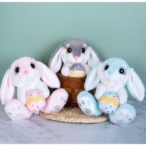 🐰 【Soft Plush Bunny】The lop-eared bunny plush toy that features an adorable look with its floppy ears, bright eyes and blue little nose.The lovely rabbit holds the egg. Soft and flexible design makes this plush bunny perfect for cuddling.