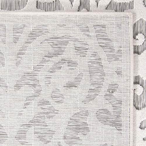 The Lady Bird area rug features a good looking damask pattern in natural gray atop a medium gray base. Durable in nature, this surprisingly soft area rug does not stain nor fade easily, easy to clean, and non-shedding for years of enjoyable, worry-free living. Do this high-low construction for elegant addition to indoor or outside entertaining areas.