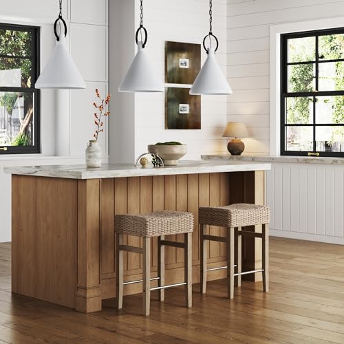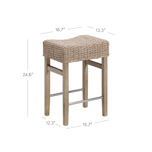 The saddle-shaped seat with seagrass upholstery is cushioned with plush foam, making it the easiest solution to your bar or counter area.