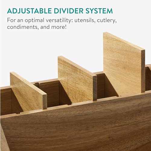 Versatile Organization: Keep your kitchen organized! Our wooden cutlery tray features an adjustable divider system for storing not only utensils and cutlery but additionally condiments, kitchen tools, and more.