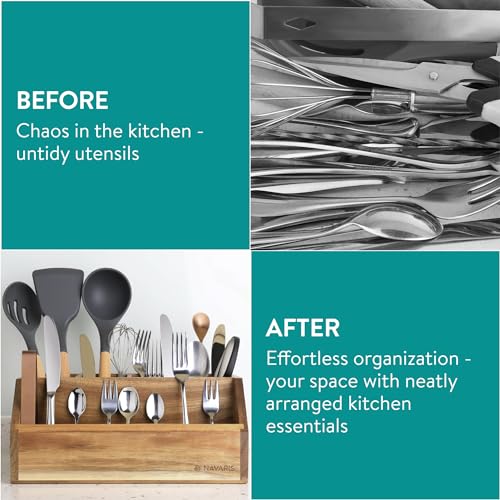 Elegant Farmhouse Decor: Add a rustic touch in your kitchen with an acacia wood large utensil holder. Its natural wood finish and farmhouse charm make it a stylish cutlery holder for table or countertop use.