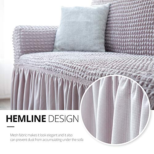 [Easy fit] Our grey covers for couch sofa has excellent flexibility.It’s easy to fit quite a lot of kinds of couches (Pls measure the size prematurely in keeping with the dimension drawings at the picture.) Anti-slip foam roller prevents the couch covers for sofa slipping off.Elastic cord can easily adjust the position of the sofa slipcovers skirt.