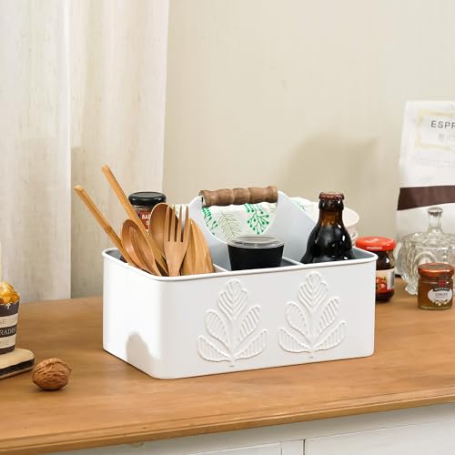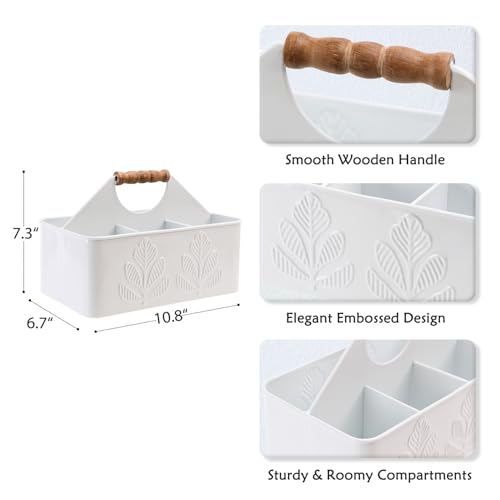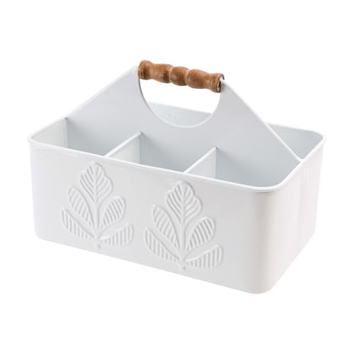 【Plant Embossed Pattern】 – Carbon steel construction includes a plant embossed design, it looks great on any farmhouse table. The plasticware holder measures 10.83 x 6.69 x 7.28 inches