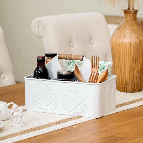 【Sturdy & Roomy Compartments】 – Features 1 large and 3 small storage compartments. Three slots are ideal for cups, forks, spoons, straws, knives, and so forth. The massive slot is absolute best for plates, napkins, condiments, sauces, seasonings, spreads, kitchen supplies, gadgets