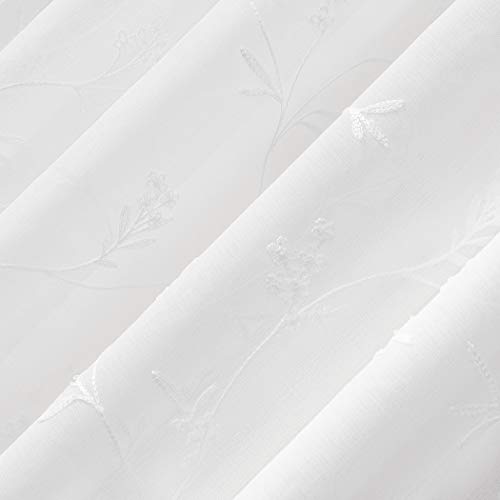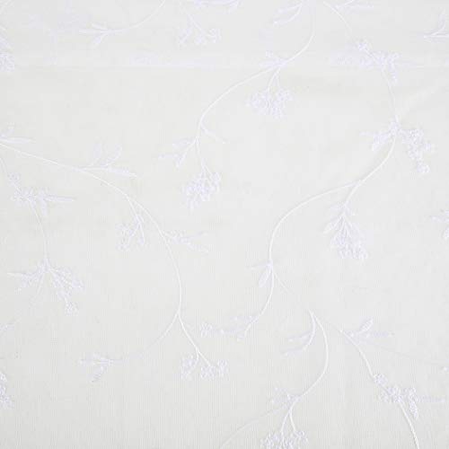 No. 918 Delia Embroidered Floral Sheer Rod Pocket Curtain Valance, 50″ x 17″, Ivory Off-White