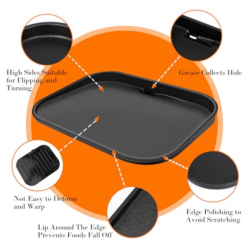 【User-Friendly Design】Designed with high sides to prevent grease splashes and a raised lip to keep food contained, this griddle ensures mess-free cooking. The smooth edges prevent scratches, and its lightweight design makes it easy to carry for Out of doors events.