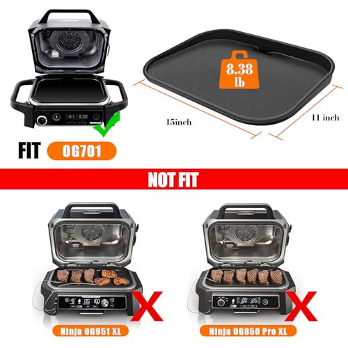 【Perfect Fit for Ninja 7-in-1 Woodfire Out of doors Grill】This cast iron griddle plate measures 15″L x 11″W x 2″H and weighs 8.38 lb. It’s designed to fit perfectly with Ninja OG701 7-in-1 Out of doors Electric Grill & Smoker, Ninja OG700 series, and Ninja Woodfire Grill Accessories. It also serves as a substitute for the Ninja XSKGRDPLT, providing seamless compatibility for your grilling needs.