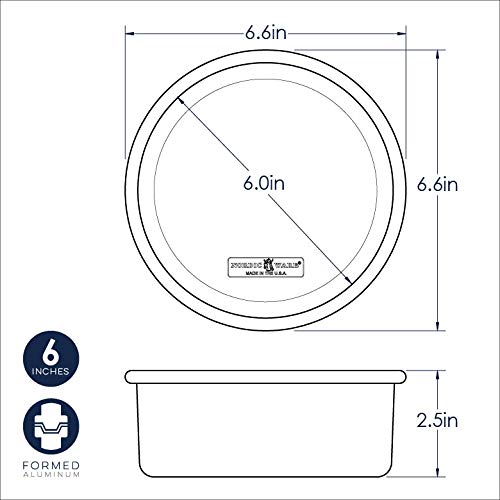 Nordic Ware’s Naturals round cake pans are the most popular choice of professional and home bakers alike. Their superior baking properties and straight-walled design result in uniform cake layers, which make layer cakes easier to stack and decorate with little or no trimming and shaping necessary. Available in 4 inch, 6 inch, 8 inch, 9 inch, 10 inch and 12 inch inside diameter sizes. Wall height is 2.4 inches which bakes beautifully tall layers. For ease of use, butter and flour pans prior to use, or use with parchment paper circles. Baking spray can also be used. Handwash to extend the life of the pan’s nonstick coating. Approved to be used with wood, silicone, and plastic utensils.