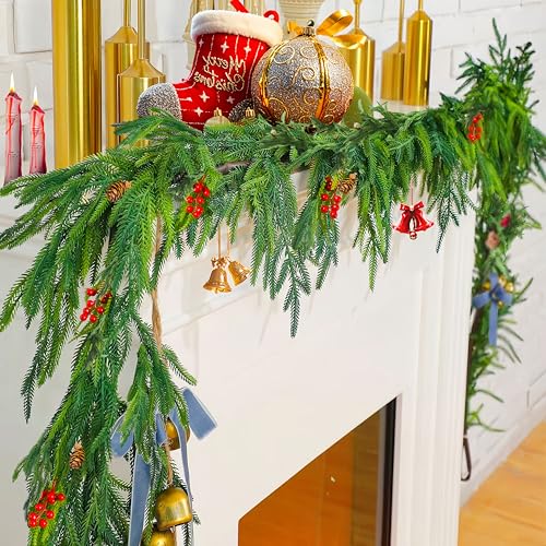 【Real Touch Garland】Our artificial Norfolk Pine Garland replicates the natural wonderful thing about real Norfolk Pine with its lifelike appearance and touch. It brings a vibrant and realistic touch to your holiday decor