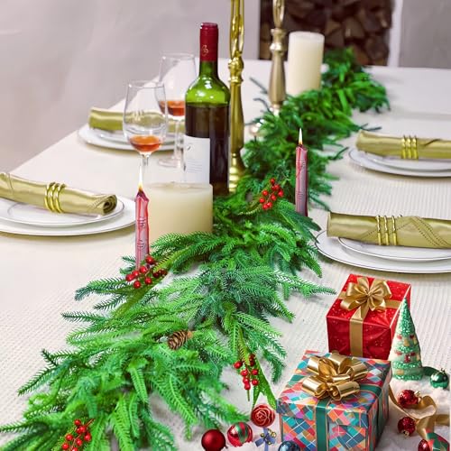【Versatile Decoration】Our Norfolk Pine garland is perfect for embellishing mantelpieces, dining tables, fireplace, kitchens, stairs, railings, walls, doorways, windows, arches, and more. It’s sure to impress your friends and family with its elegant and festive touch