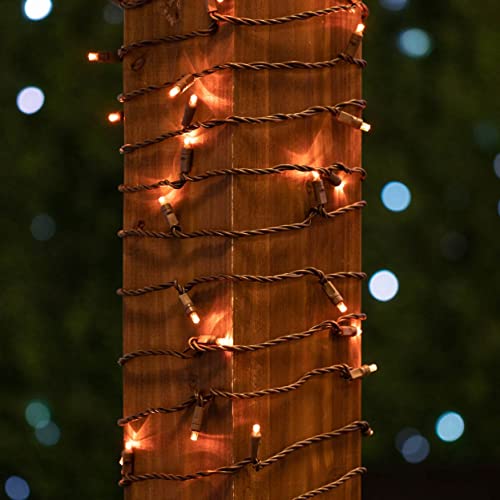 Novelty Lights 11 Feet 50 Light Brown Wire LED Christmas Lights Outdoor, Commercial Grade, Amber, 5mm Bulbs, UL Listed, Connectable up to 470 Feet